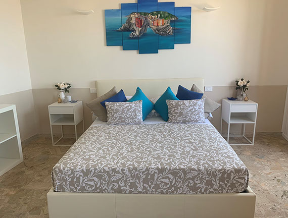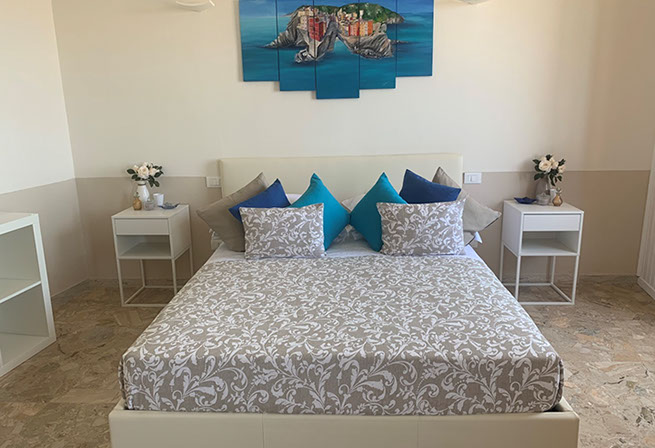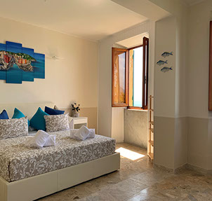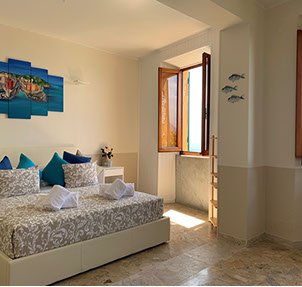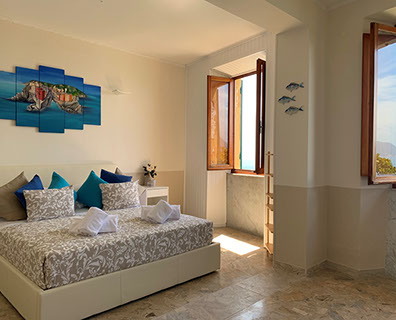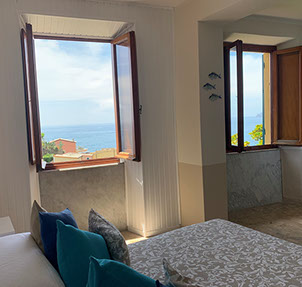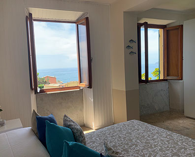 La camera sAN gIORGIO 1 si trova nella struttura principale ed è un'ampia camera matrimoniale dotata di due finestre che regalano una meravigliosa vista sul mare.