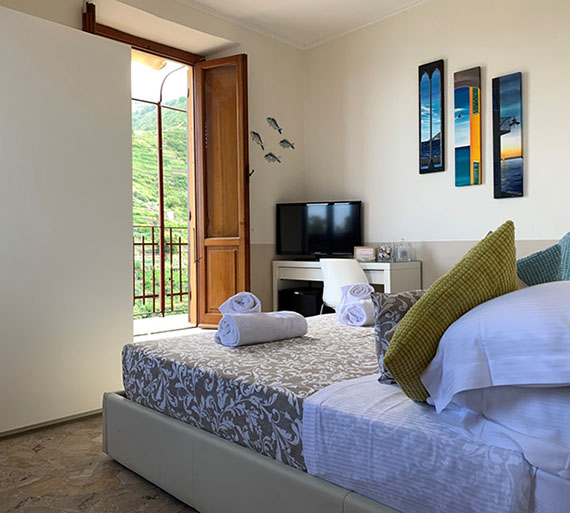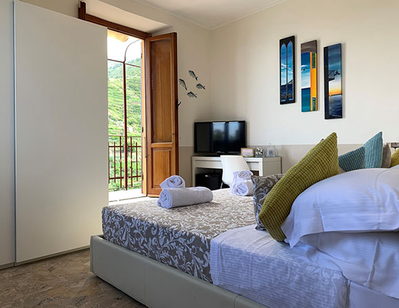 > Balcone comunicante vista mare e sul paese.