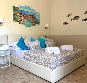 Questa soluzione è perfetta per chi cerca un ambiente spazioso e comodo infatti, previa richiesta, è possibile aggiungere un'altra camera e soggiorno.